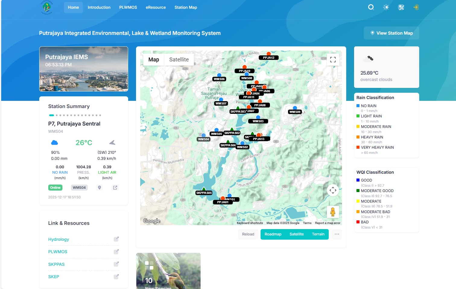 SKPPAS is a critical component of IEMS designed specifically to monitor the water quality of Putrajaya Lake. This sub-module receives data from dedicated lake water quality monitoring stations and provides real-time information on key parameters such as pH levels, dissolved oxygen, turbidity, and other pollutants. This enables early detection and identification of pollution sources, allowing timely and effective corrective actions to be implemented.